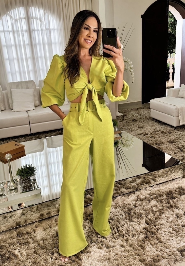 O Conjunto Belinda em viscolinho é a peça ideal para quem quer estar linda e confortável em qualquer ocasião! Com um tecido leve e fresquinho, ele se adapta perfeitamente ao corpo, vestindo do 38 ao 42. O design moderno valoriza suas curvas e garante um caimento incrível