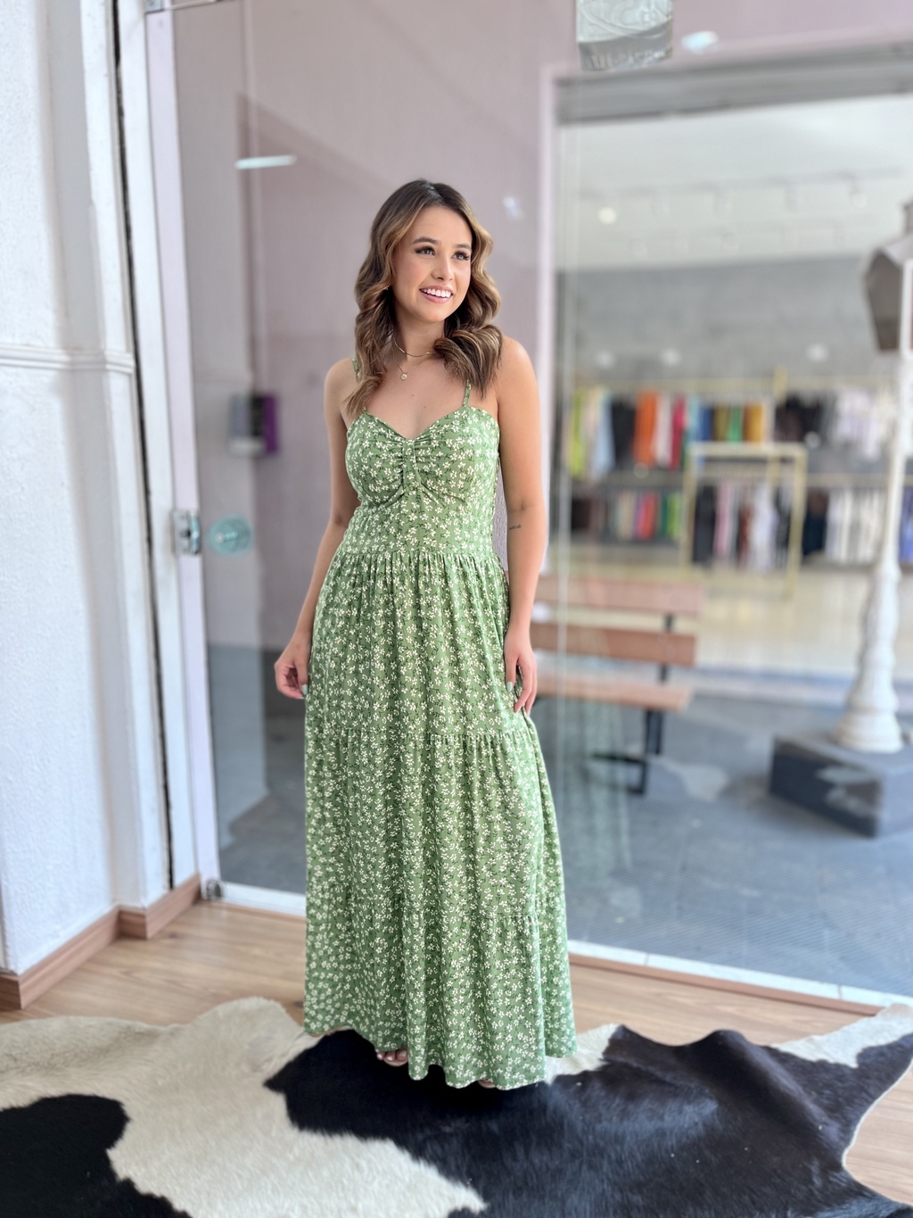 Prepare-se para encantar com o Vestido Bella Flor, a peça que une frescor e conforto! Possui regulagem nas alças, permitindo um ajuste perfeito ao seu corpo. O lastex nas costas garante um caimento ideal, vestindo do manequim P ao G, sem se preocupar com transparência.