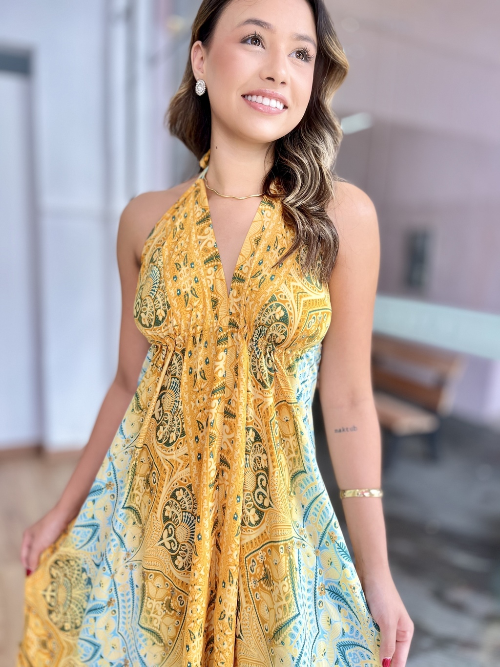 O Vestido Indiano em Seda é a peça ideal para quem busca conforto e elegância. Feito em 100% seda, proporciona um caimento leve e suave, perfeito para os dias quentes do Brasil.